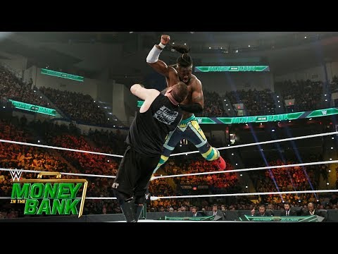 Kofi Kingston puts the pressure on Kevin Owens at ringside during the WWE Title Match at WWE Money in the Bank 2019. Courtesy of WWE Network. #MITB